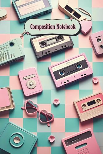 Y2K Vibes Notebook – Retro Tech Aesthetic with Kawaii Cassette Tapes, Flip Phones & Heart Glasses: Pastel Teal & Pink Checkered Journal for Teens – 6" ... Notebook with Stickers & Cute ‘00s Icons