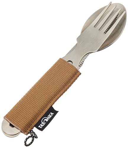 Tatonka Cutlery Set 2 (4 delar) – campingbestick av rostfritt stål bestående av kniv, gaffel, sked och konservöppnare