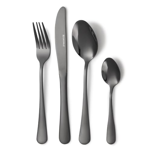 LAGUIOLE, 24-piece cutlery set in 430 stainless steel, modern and elegant design, glossy black PVD coating, 6 knives, 6 forks, 6 spoons, 6 dessert spoons - Black