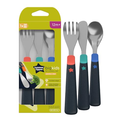 Tommee Tippee Big Kids Stainless Steel First Cutlery Set, Rounded Edges, Chunky Handles, 12m+