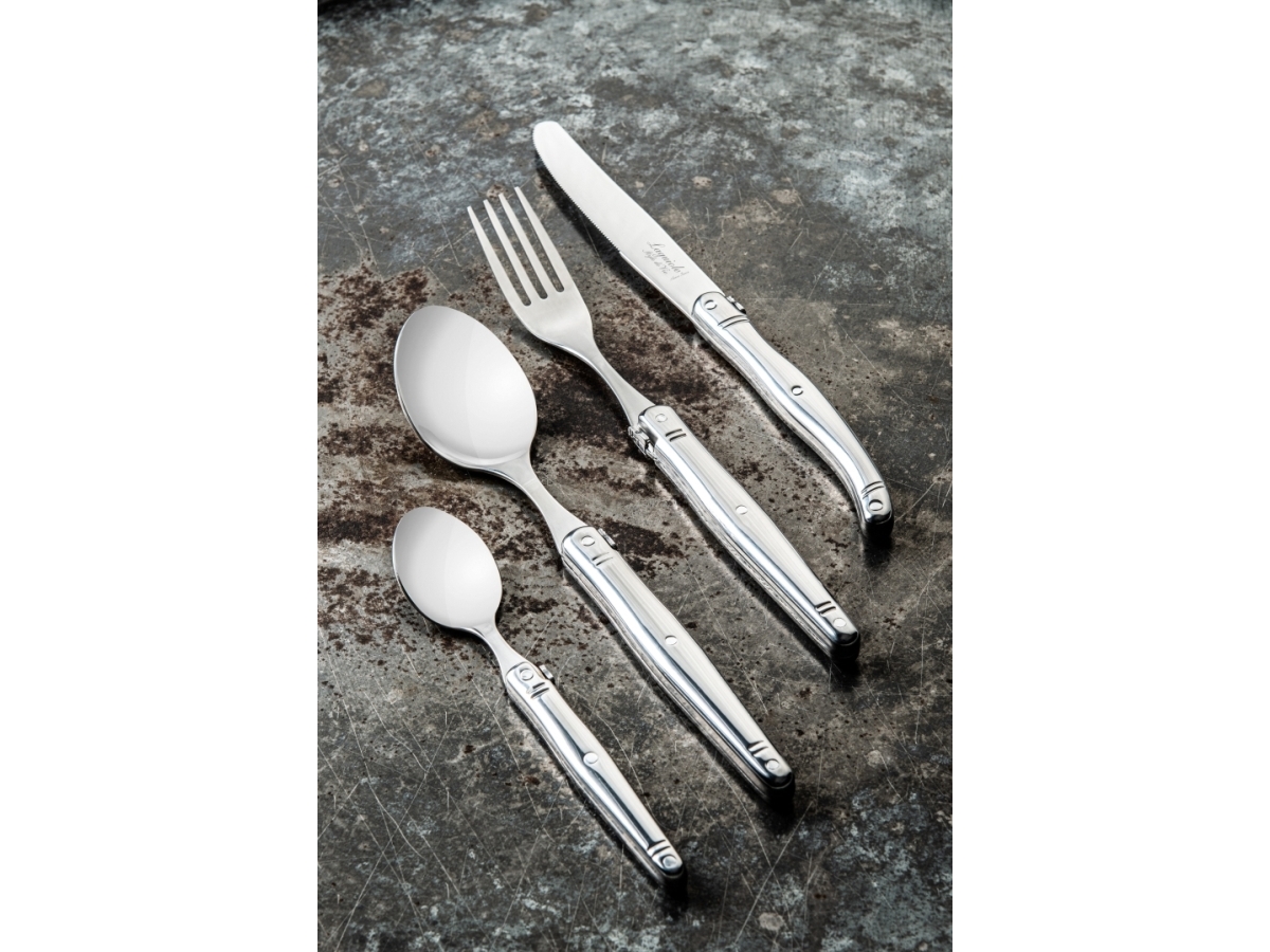 LAGUIOLE, 24-piece cutlery set in 430 stainless steel, elegant and modern design, 6 knives, 6 forks, 6 spoons, 6 dessert spoons, shiny finish, Size: 24 pieces, Silver