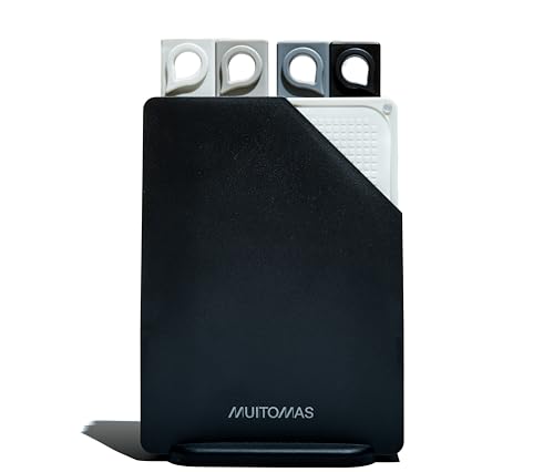 Muitomas, Färgade skärbrädor i hårdplast för kök, med halkfria gummiband och tunn utrymmesbesparande behållare, 20,5 x 14,5 cm, svart