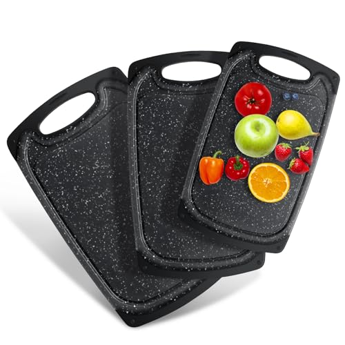 Romon skärbräda plast, 3 stycken skärbrädor halkfria handtag skärbräda, chopping board diskmaskinssäker professionell köksbräda skärbräda set för kök camping, S/M/L