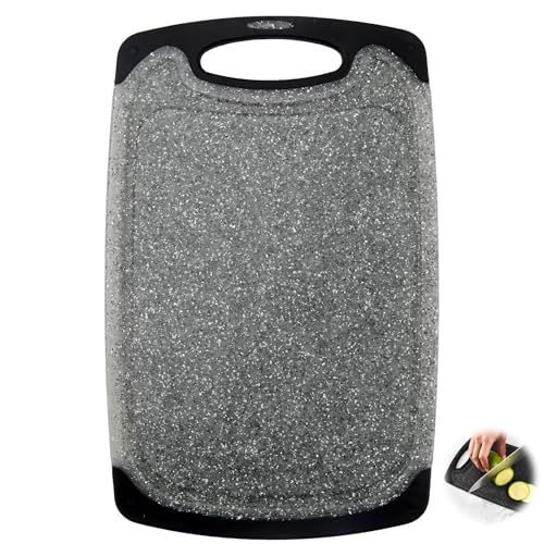 NeutypeChic skärbräda plast med juicespår och ett stycke halkfria silikonhandtag, 31,5 x 19,8 x 1 cm, BPA-fri, diskmaskinstålig köksbräda