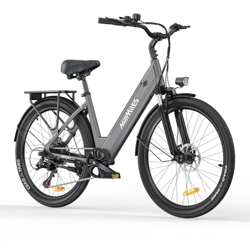 HillMiles Elektrisk cykel för vuxna, 26 tum, 7 hastigheter, elektrisk cykel 36 V 13 Ah avtagbart batteri, 25 km/h och batteritid 80–100 km E-cykel för urbana pendlar, IP65 vattentät (grå)