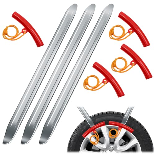 DAWRIS 3 stycken monteringsspak däck, däcklyftare 30 cm med 4 fälgskydd, däckdragningshjälp med hjul, fälgskydd, däckborttagare, däckbyte verktyg för motorcykel, cykel, bil