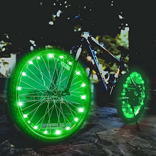 balabaxer 2-pack grön LED vattentät cykellampa, nattcykling cykel hjul ljus, 3 belysningslägen, enkel installation (med batteri)