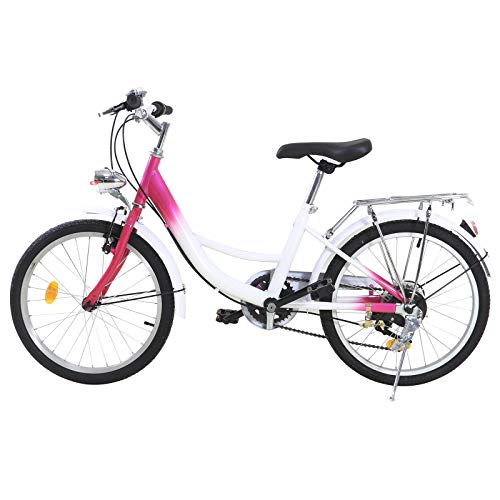 LENJKYYO 20 tums trehjuling för vuxna 3 hjul barn cykel trehjuling 6 växlar kryssare cykel rosa & vit cykel med kudde