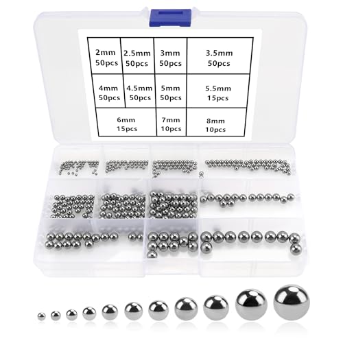 YIXISI 400 Stycken 11 Storlek Metrisk Precision Bärande Stålkulor Sortiment, för Hjul, Cykel, Skateboardlager, 2/2.5/3/3.5/4/4.5/5/5.5/6/7/8 mm