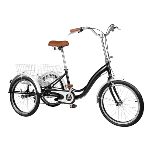 Garbenat 20 tums trehjuling cykel trehjuling för vuxna single speed 3 hjul cykel lastcykel med korg moderna seniorer trehjuling vuxna trehjulingar för män kvinnor äldre människor (svart)