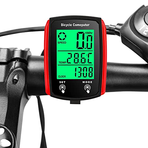 Cykel hastighetsmätare, vattentät trådlös cykel cykel dator cykel vägmätare, vattentät cykel hastighetsmätare cykel dator med LCD-skärm för cykeltillbehör röd svart