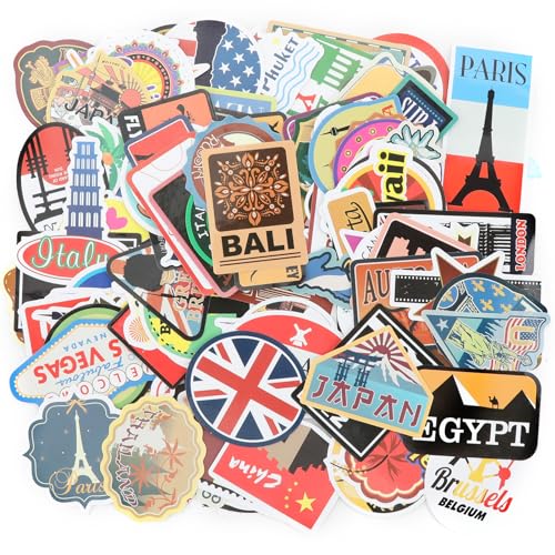 100 st högkvalitativa reseklistermärken - färgglada dekaler för resväska, bärbar dator, motorcykel, cykel, gitarr och klippbokning - vinyldekaler med realistiska detaljer