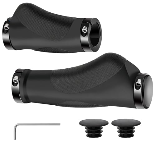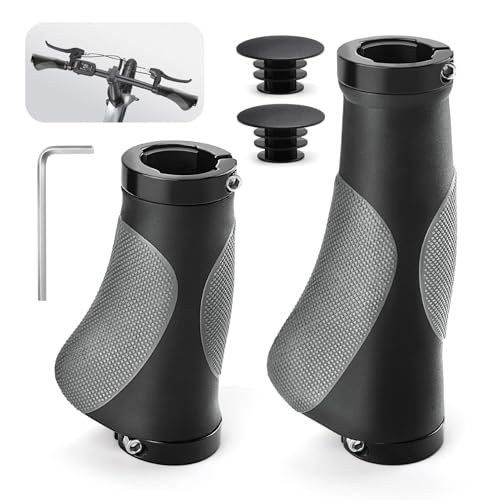 Nutmanel Ergonomiska cykelhandtag 22 mm, styre av halkfritt gummi med dubbel lås-on-design, MTB-handtag för e-cykel, stadscykel, turcykel, trekkingcykel