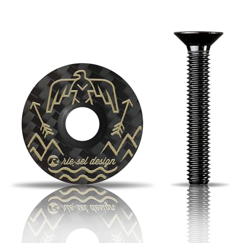 Riesel Design - STEM Cap - Premium cykel styrplugg i kol + anodiserad aluminiumskruv - 6gr!!!! Storlek 1 1/8 tum - örn