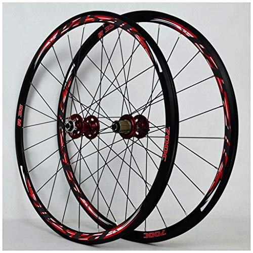 LSRRYD Hjulset 700C fälg för cykel vägcykel hjulskiva/V-broms 7-11 hastighet kassettnav förseglat lager 6 tassar QR 1700 g (Färg: B-röd, storlek: 700 c)