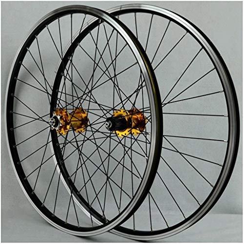 LSRRYD MTB Hjul 26 tum cykel hjulset mountainbike fälg 32 ekrar skiva/fälgbroms QR tätade lagernav 6 tassar för 7-12 hastigheter kassett svänghjul (färg: Guldnav, storlek: 26 tum)