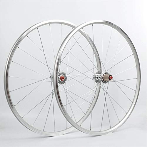 LSRRYD Hjulset för MTB 26/27,5 / 29 tum cykel skivbroms cykel hjul dubbla lager legering kant 24 ekrar 8-12 hastighetskassett förseglat lager navar QR (färg: A-silver, storlek: 26 tum)