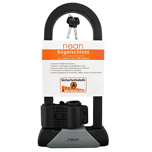 Nean Square Cykel hänglås, hållare, 2 nycklar, extra solid, 16 x 16 mm, 167 x 330 x 40 mm
