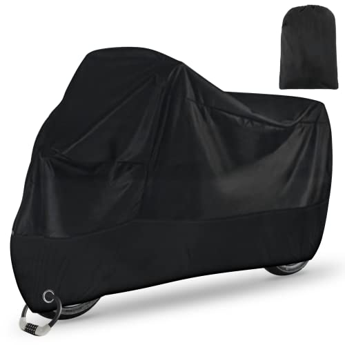 Motorcykel presenning utomhus vintersäker XXL, 210D oxfordtyg vattentätt skoterskydd med nyckelhål för moped, cykel, sommar, skyddar mot UV regn snö damm 245 x 105 x 125 cm svart