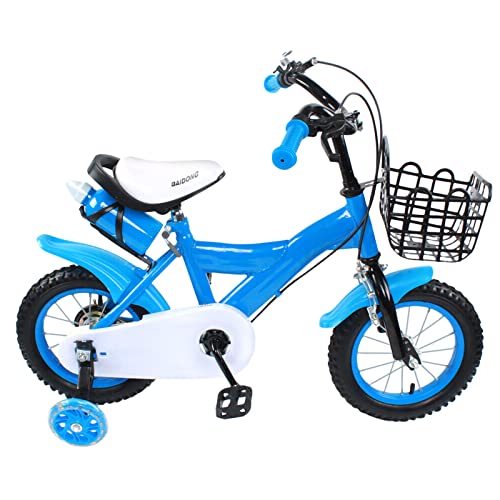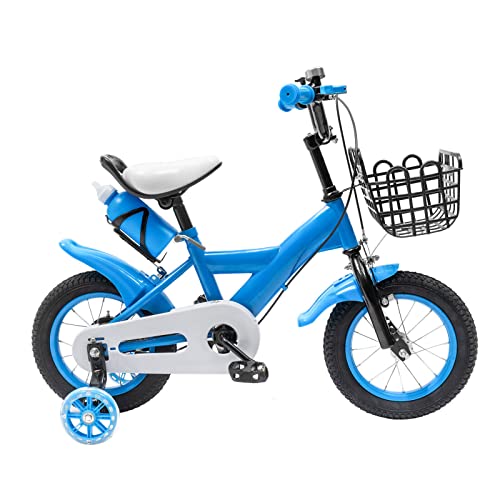 JINPRDAMZ Barncykel för 2–4 år, 12 tums blå barncyklar med stödhjul cykel, cykel med förvaringskorg och dricksflaskhållare, cykel för pojkar och flickor, cykel