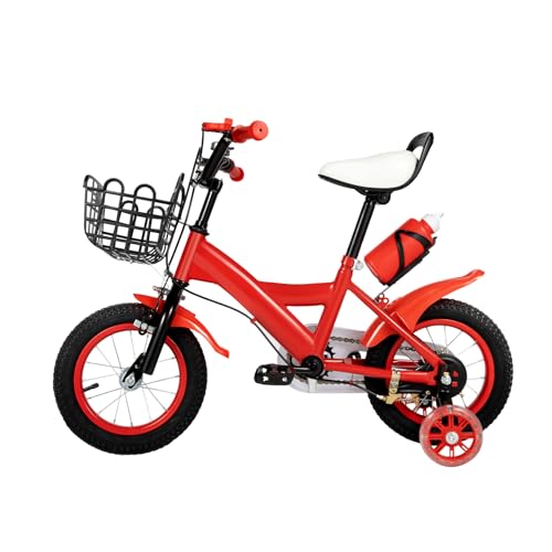 JINPRDAMZ Barncykel för 3–4 år, 12 tums röda barncyklar med stödhjul, förvaringskorg och flaskhållare, cykel för pojkar och flickor