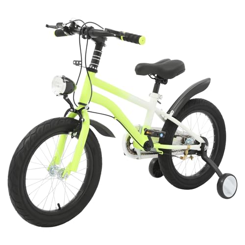 HuKaiL 16 tums barncykel, sparkcykel från 5–8, cykel barn för pojkar flickor, justerbar höjd barncykel med stödhjul dubbelbromssystem (grön)