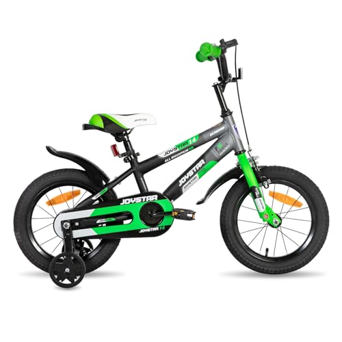 PROMETHEUS BICYCLES Barncykel 14 tum från 4 år bmx cykel 14 tums pojke flicka - barn cykel för barn med stödhjul fotbroms i grön
