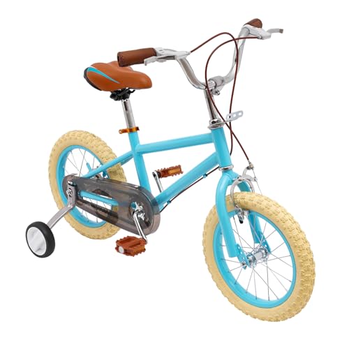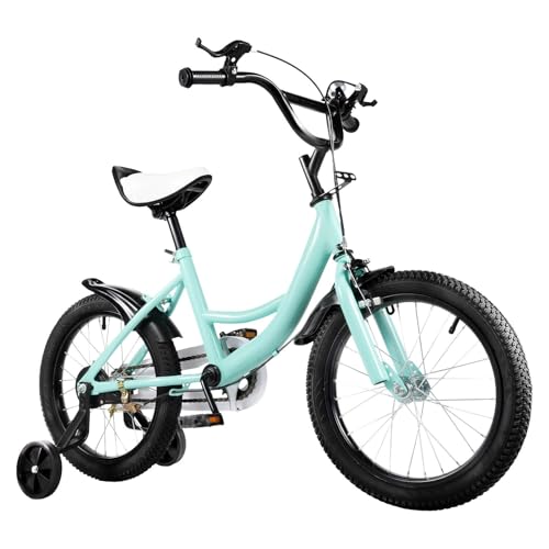 MEHOOSPVN 16 tums barncykel för 5–8 år, pojkar flickor kolstål-legering cykel, utbildningsfordon med stödhjul, dubbelbromssystem, justerbar höjd