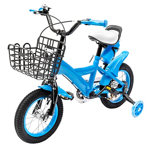 WSIKGHU 12 tums barncykel, pojkar, flickor, cykel, nybörjarcykel, barncykel med stödhjul och korg, lämplig för barn i åldern 2–5 år (blå)
