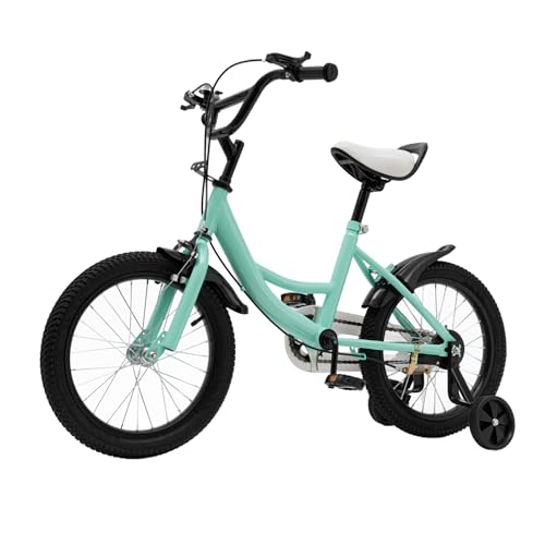 Garbenat Barncykel, 16 tum, pojkar och flickor, cykel, barn, uppgraderad barncykel, för 5–8 år, justerbar höjd barncykel med stödhjul, dubbla bromsar, stänkskärmar (grön)