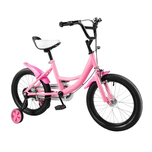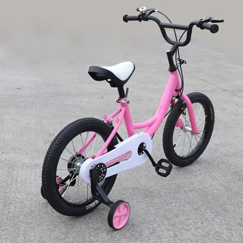 Lilyeriy 16 tums barncykel med stödhjul, cyklar för från 5–8 år, pojkar, barn, cykel, barncykel med justerbar höjd (rosa)
