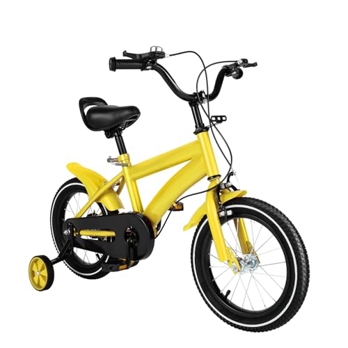 LENJKYYO 14 tums barncykel röd barn cykel pojkar flickor med stödhjul unisex år leksaker gåvor gåcykel barncyklar barncykel stödcykel (gul)