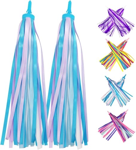 PLATT Barn cykel styre streamers färgglada band tofs för flickor pojkar cykel styre scooter handgrepp (1 par)