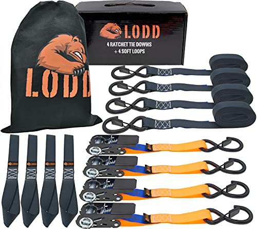LODD - 4 spärrremmar 4 m x 25 mm - styrka 800 kg - plastsäkra krokar och 4 mjuka spännen - överensstämmer med 12195-2 - perfekt för bagagetransport, möbler, trailer, skoter, cykel