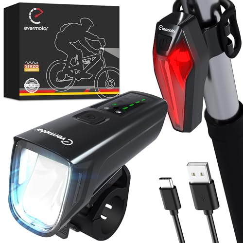 evermotor 100Lux StVZO-godkända LED-cykellampor, USB-C-uppladdningsbar, främre lampa + cykel blinkers, superljus cykelbelysning