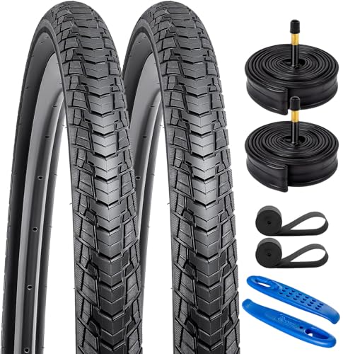 Fincci Grus Cykeldäck 700 x 38c – par hopfällbara däck 28 tum med 1 mm nylonskydd och 2 x innerslang 40-622 presta-ventil, 60 TPI för elektrisk, Hybrid, Mtb, väg- och touringcyklar – paket med 2