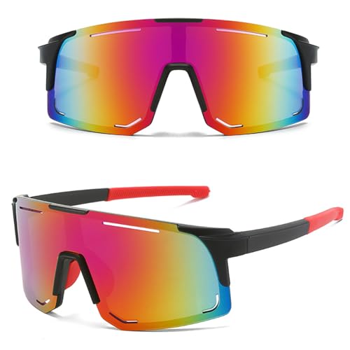 Eninedeuisou solglasögon cykelglasögon för män kvinnor UV 400 skydd skyddsglasögon MTB sportglasögon för utomhussport cykling löpning golf baseball (vit röd)