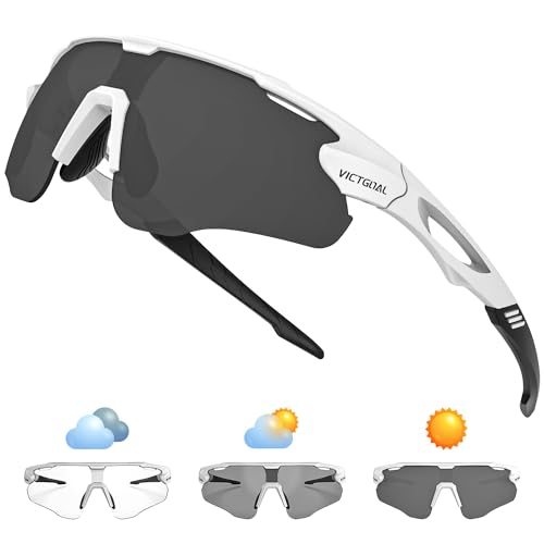 VICTGOAL Fotokroma cykelglasögon herr dam TR90-ram cykelglasögon med UV-skydd sportglasögon för löpning och cykling (vit)
