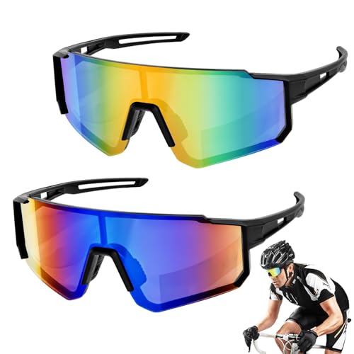 BECILES 2 stycken cykelglasögon för män och kvinnor, cykelglasögon vindtäta UV 400, färgglada cykelglasögon anti-UV, racercykel glasögon för utomhusaktiviteter som cykling löpning klättring bilkörning