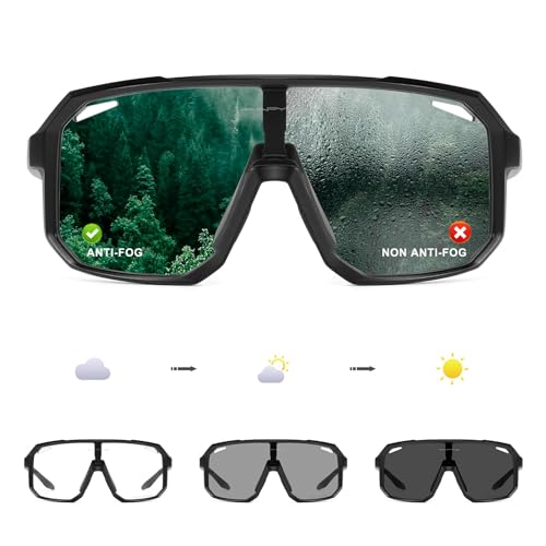 KAPVOE Fotokromiska cykelglasögon för män kvinnor mountainbike solglasögon, anti-dimma solglasögon för utomhus svart