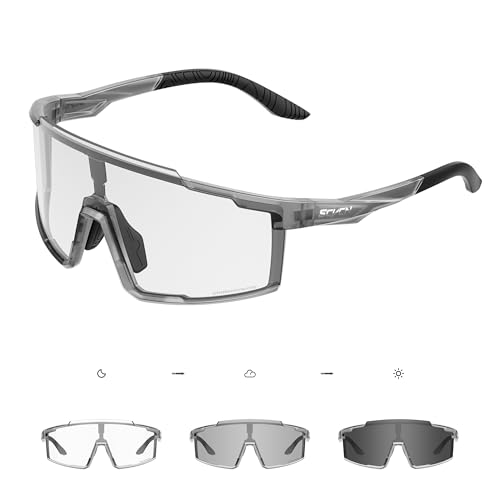 VICTGOAL Fotokroma cykelglasögon herr dam TR90-ram cykelglasögon med UV-skydd sportglasögon för löpning och cykling (grå)