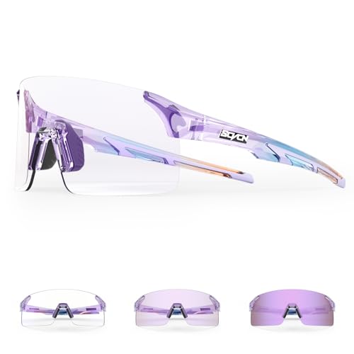 SCVCN Cykelglasögon självtonande för kvinnor och män, fotokroma cykelsportglasögon solglasögon med UV400 skydd kantlösa genomskinliga glasögon för utomhussport S142-PH
