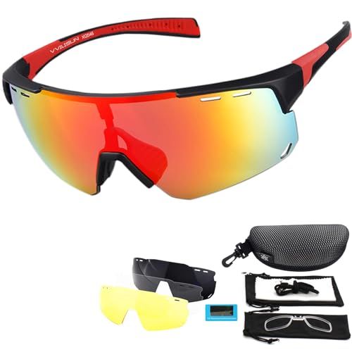VILISUN Cykelsportglasögon, polariserade sportglasögon, cykelglasögon, UV400, skydd med 4 utbytbara glas, cykelglasögon, kvinnor, män, för utomhussport, cykling, motorcykel, löpning, fiske, golf
