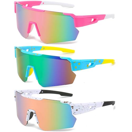Hifot Sportsolglasögon för män cykelglasögon kvinnor 3 stycken, solglasögon män polariserade sportglasögon för jogging löparglasögon kvinnor snabba glasögon cykelglasögon, Svartblå röd, 58mm x 20mm x