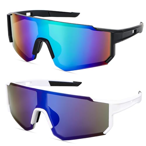 WuGU Sports Solglasögon, 2-pack polariserade cykelglasögon, UV400 sportglasögon Cykelglasögon kvinnor, skyddssportsolglasögon för män kvinnor, anti-UV glasögon, för Cykling Köra Löpning utomhussport