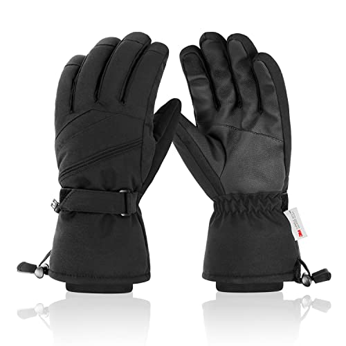 Lzfitpot Handskar herr, vinterhandskar, dam handskar, pekskärm varma cykelhandskar, skidhandskar, vattentäta, vindtäta och halkfria., svart, M