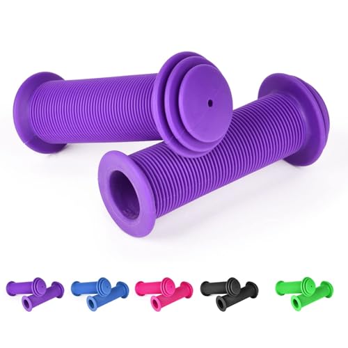 RAFIYU Cykelhandtag för barn, handtag cykel, 1 par 22 mm slagskydd barncykelhandtag, halkfritt mjukt gummi barncykel tillbehör lång 105 mm för skoter, trehjuling, barncykel (lila)