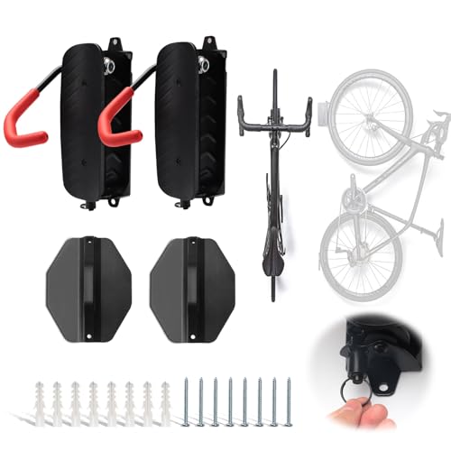 2 stycken svängbara väggfästen för cykel, vertikal cykelhängare för garaget, cykelställ mountainbike väggfästen platsbesparande för MTB vägcykel stadscykel, lastkapacitet upp till 30 kg