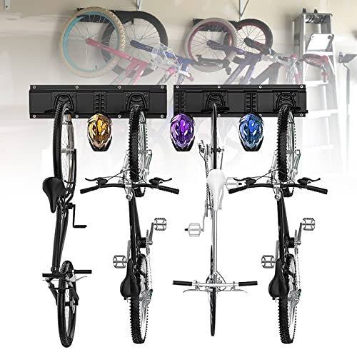 Väggmonterad cykelförvaring, vertikal cykelhängare, slitstark cykelhållare för 4 cyklar + 3 hjälmar, cykel- och verktygsförvaringsställ, justerbar för garage och hem, belastning upp till 230 kg (507