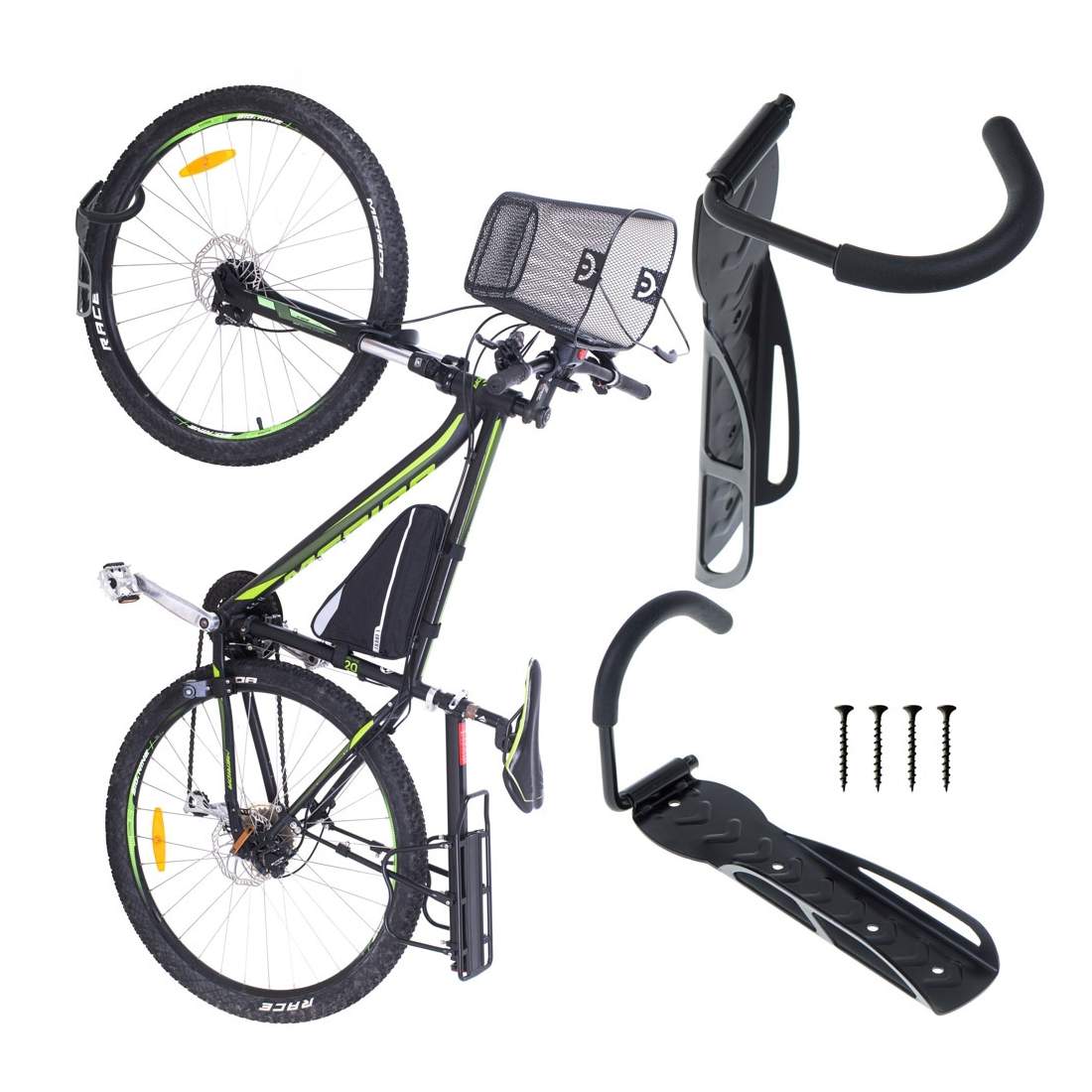 Montek Vridbart cykelväggfäste, cykelhängare för garage, platsbesparande väggcykelställ, stadigt cykelställ, håller upp till 30 kg, lätt att installera, svart, 4-pack